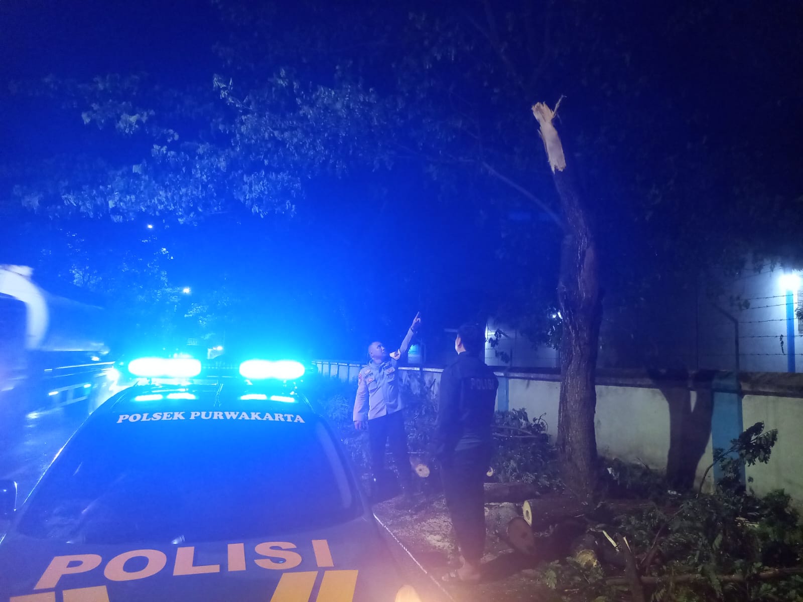 PERSONIL POLSEK PURWAKARTA PATROLI DI TENGAH HUJAN DERAS PASTIKAN WILAYAH AMAN