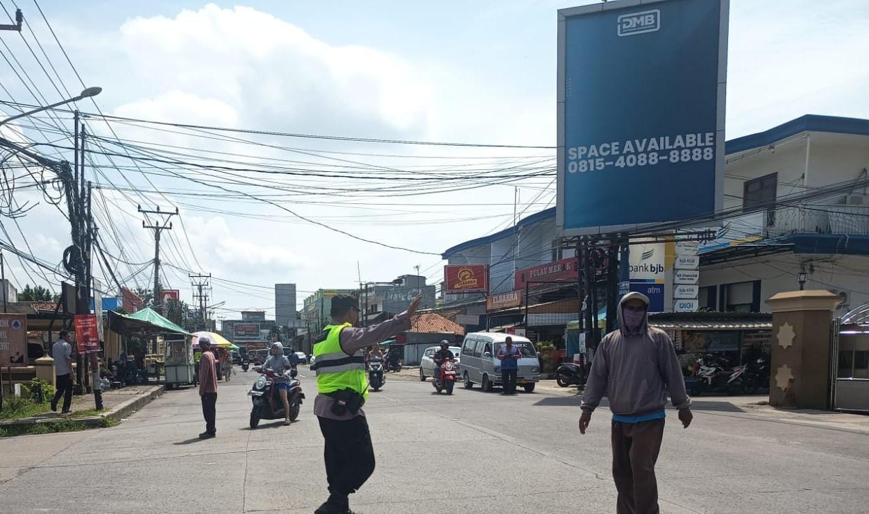 Polsek Anyar Berikan Pengaturan Lalu Lintas Jalur Anyar - Cinangka
