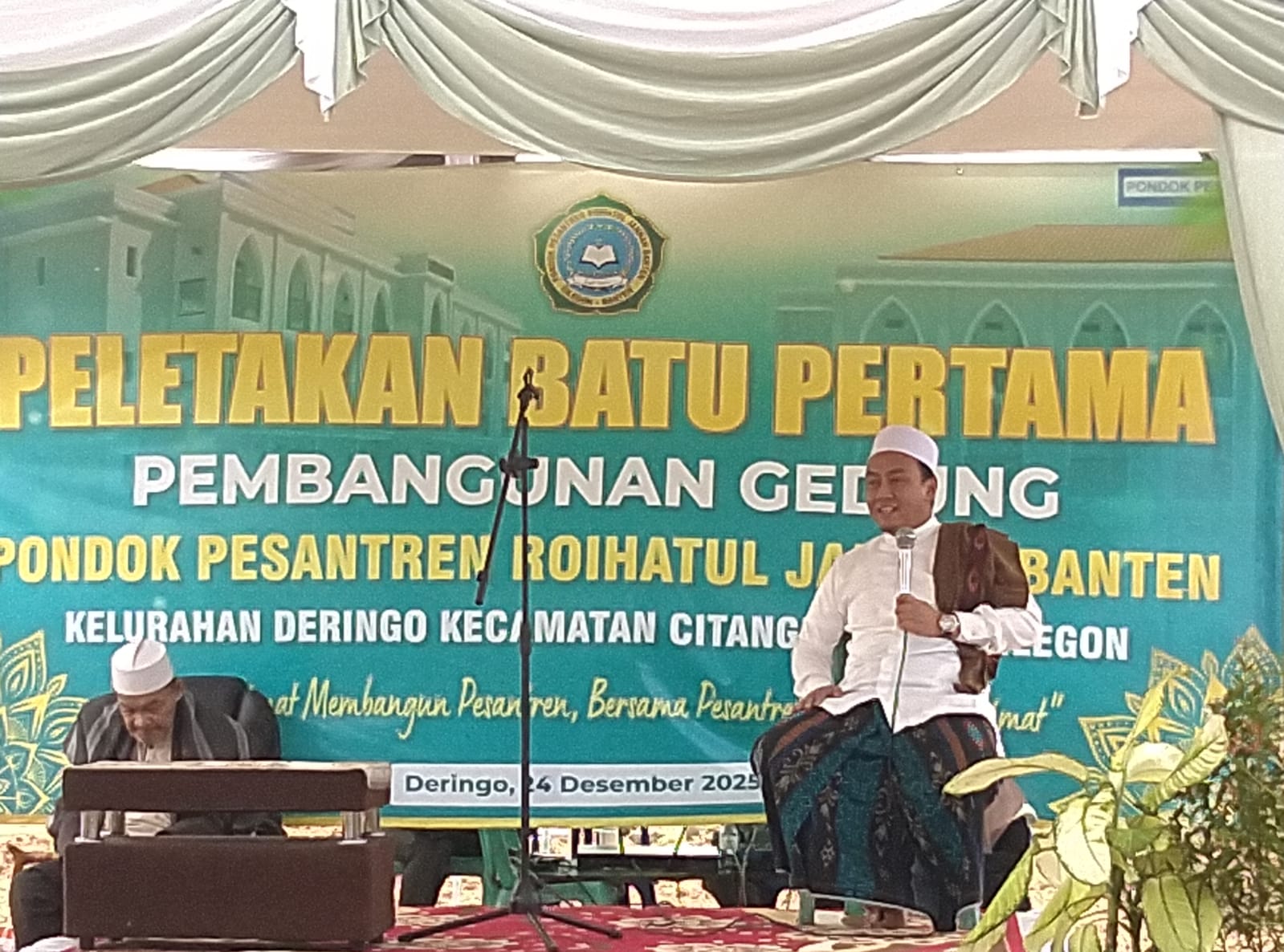 Cilegon - Wakapolsek Ciwandan AKP Uup M Ma'ruf dan personil Polsek Ciwandan hadiri peletakan batu pertama pembangunan Ponpes Roihatul Jannah Banten di Link. Warnasari 2, Kel. Dringo, Citangkil. Kegiatan dihadiri Pemerintah Daerah, TNI Polri, Tokoh Agama, dan Masyarakat,Rabu (24/12/2025).