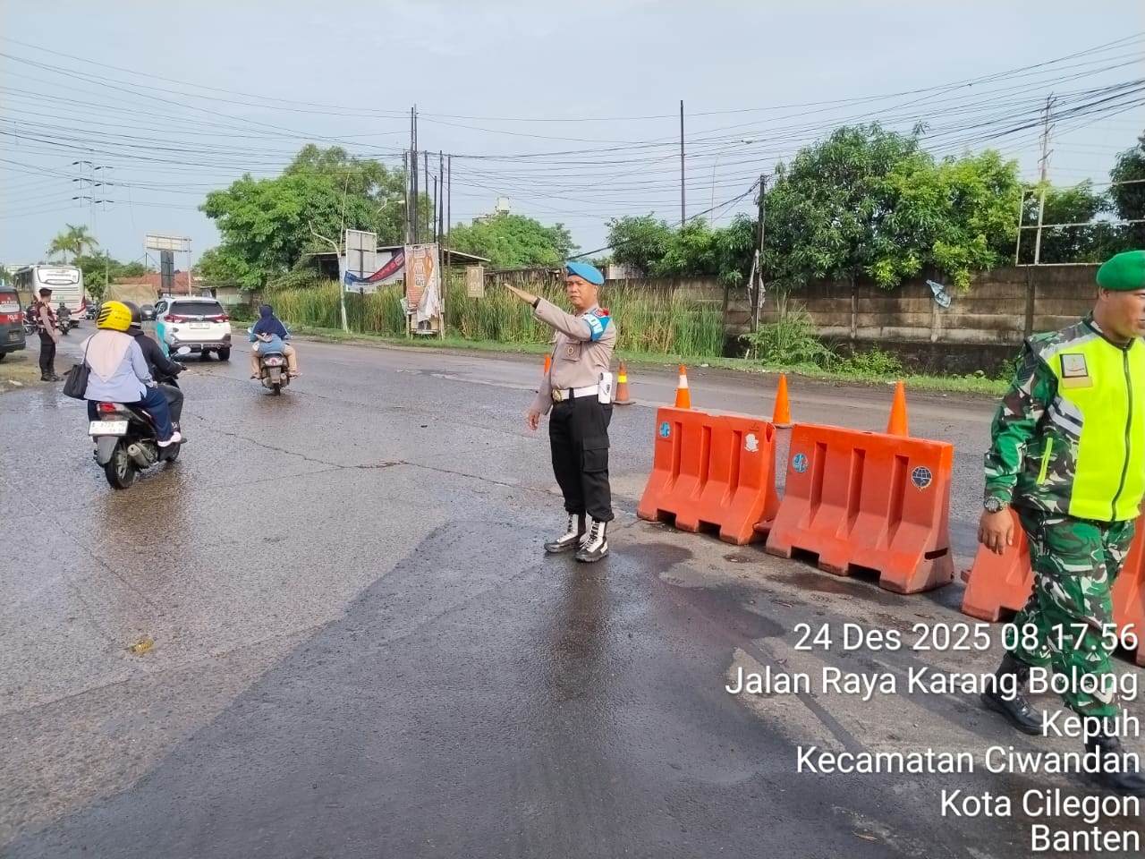 Kapolres Cilegon Polda Banten AKBP Dr. Martua Raja Taripar Laut Silitonga yang di wakili Kapolsek Ciwandan Polres Cilegon Polda Banten Kompol Andi Suherman mengatakan, "Guna terciptanya kelancaran arus Libur Natal Dan tahun Baru 2025-2026, Pospam 5 Ciwandan merekayasa arus lalu lintas yang akan menuju Pelabuhan Pelindo Banten.
