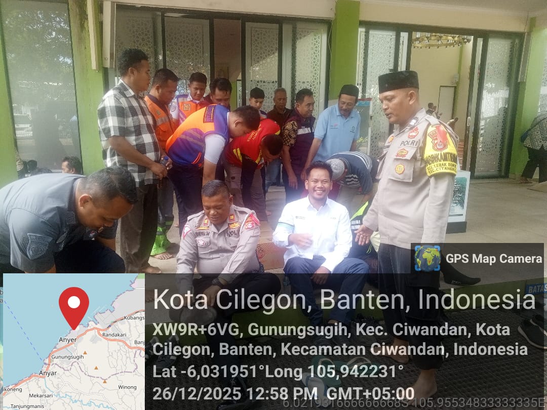 Cilegon - Bhabinkamtibmas Polsek Ciwandan Polres Cilegon Polda Banten Selesai melaksanakan Sholat secara berjama’ah dan Sampaikan Himbauan-himbauan Kamtibmas Kepada Masyarakat Jama'ah Yang ada Dimasjid, Jum'at (26/12/2025).