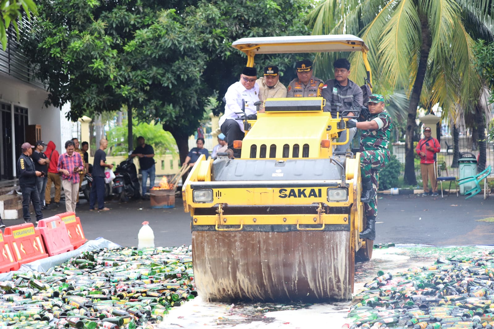 Deretan barang bukti minuman keras dan narkoba yang disita selama tahun 2025 dimusnahkan sebagai bentuk komitmen Polres Cilegon dalam memberantas peredaran minuman beralkohol ilegal, narkotika, serta obat-obatan berbahaya. Adapun barang bukti yang dimusnahkan berupa 2.240 botol miras berbagai merek, 15 liter tuak, ganja seberat 676,45 gram, tembakau sintetis/gorila 247,02 gram, psikotropika 500 butir, obat keras hexymer 10.000 butir, tramadol 8.000 butir, trihexypenidyl 10.000 butir, double Y 1.000 butir, serta 44 bilah senjata tajam. Seluruh barang bukti tersebut berasal dari pengungkapan 71 kasus dengan total 82 tersangka selama periode tahun 2025.