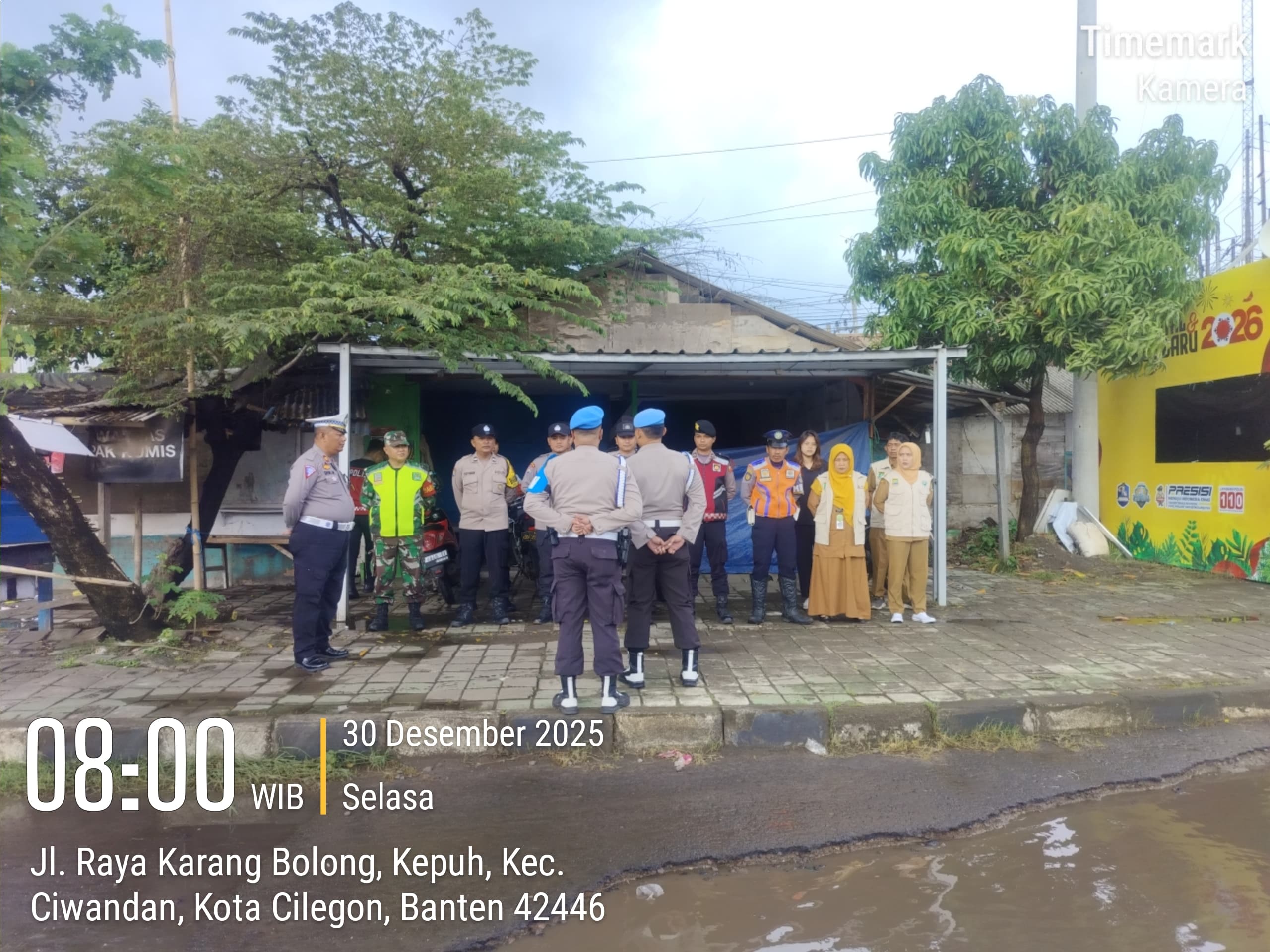 Cilegon - Personil Pospam 5 Ciwandan Polsek Ciwandan Polres Cilegon Polda Banten melaksanakan Apel Kesiapan Pelaksanaan kegiatan pengamanan Arus Lalu-lintas Wisata Dalan Operasi Lilin Maung 2025, Selasa (30/12/2025).