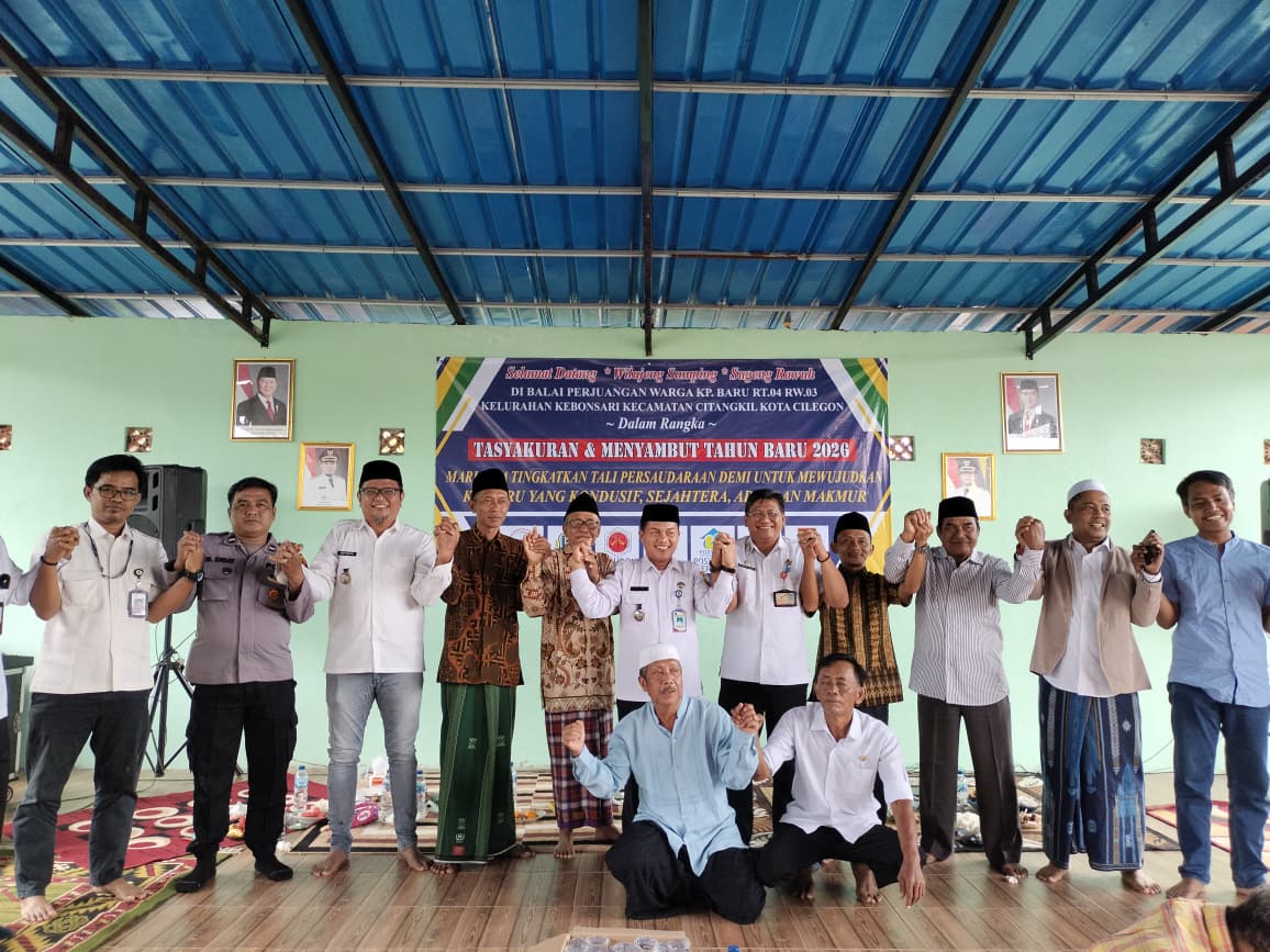 Cilegon - Polres Cilegon melalui Bhabinkamtibmas AIPDA M. Enday dan Babinsa SERMA Heriyanto hadiri tasyakuran dan sambutan Tahun Baru 2026 di Balai Perjuangan Warga Kampung Baru Rt. 04/03, Kebonsari, Citangkil. Kegiatan ini bagian dari giat "Commander Wish Kapolres Cilegon TRENDING" untuk jaga kondusifitas keamanan dan kebersamaan dengan masyarakat,Rabu (31/12/2025).