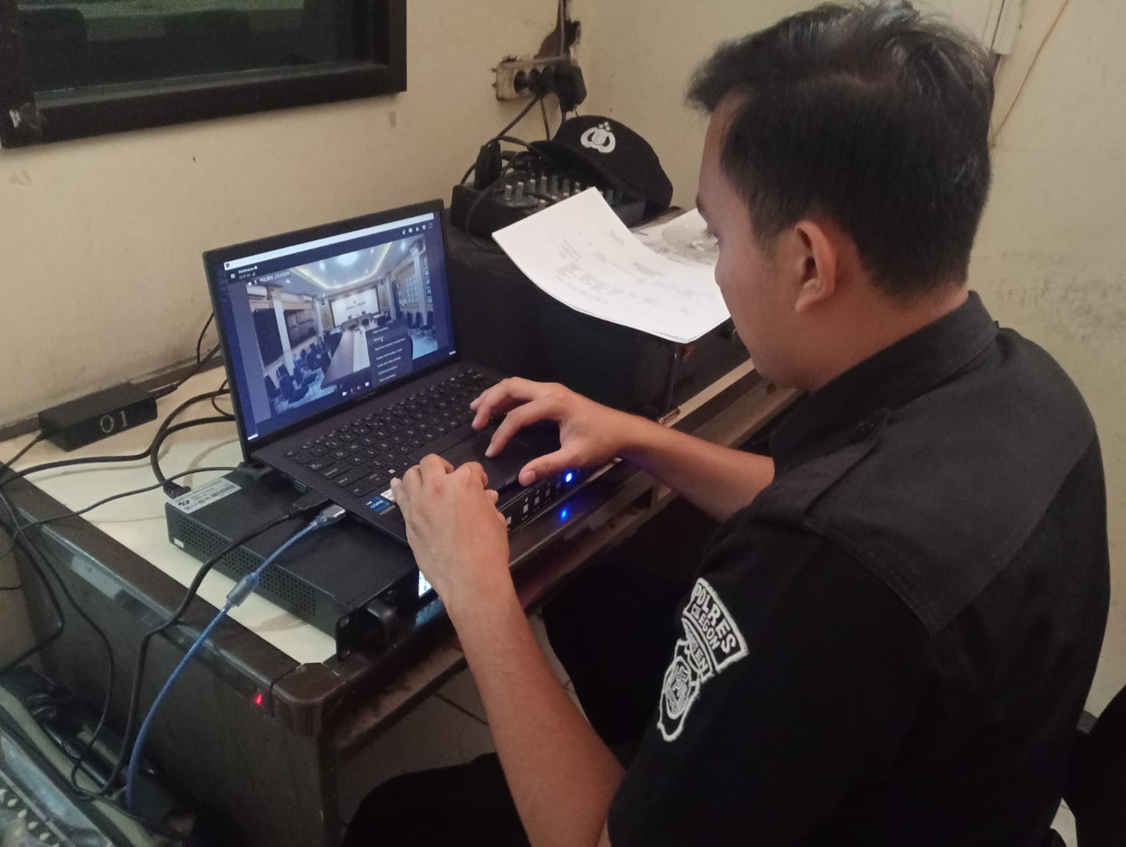 Anggota Tik Polres Cilegon Menyiapkan Sarana dan Prasarana Untuk Kegiatan Zoom meeting Dalam pelaksanaan kegiatan zoom meeting tersebut anggota TIK Polres Cilegon yang bertanggung jawab untuk menyiapkan peralatan zoom. Selain itu agar di tidak ada gangguan jaringan sebelum pelaksanaan anggota TIK melakukan pemeriksaan terhadap sarana dan prasarana tersebut . Satu jam sebelum kegiatan zoom meeting itu dimulai. Kapolres Cilegon AKBP. DR. MARTUA RAJA TARIPAR LAUT SILITONGA. melalui Kasi TIK AIPTU Suwanto, S.H. menyampaikan bahwa “untuk menunjang kelancaran penyampaian informasi anggota TIk Polres Cilegon selalu memeriksa sarana dan prasarana tersebut, sebelum maupun pada saat pelaksanaan akan selalu di monitor”