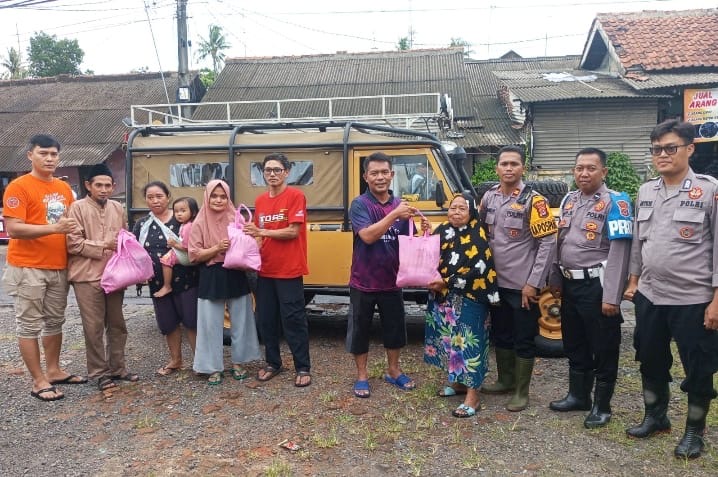 Kapolsek Purwakarta IPTU Sukanda bekerja sama dengan Komunitas Indonesia Off-Road Federation (IOF) memberikan bantuan sembako kepada warga Kelurahan Ramanuju, Kecamatan Purwakarta, yang terdampak banjir