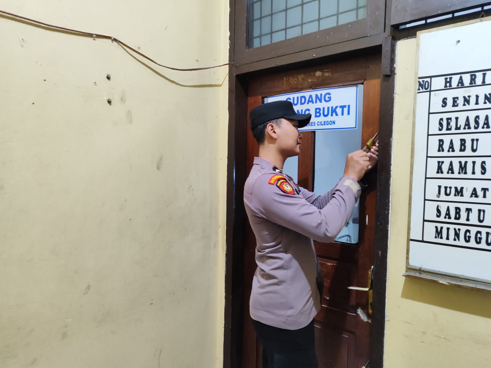 Piket Sat Tahti Melaksanakan Kegiatan Pengecekan Barang Bukti Di Sattahti Polres Cilegon