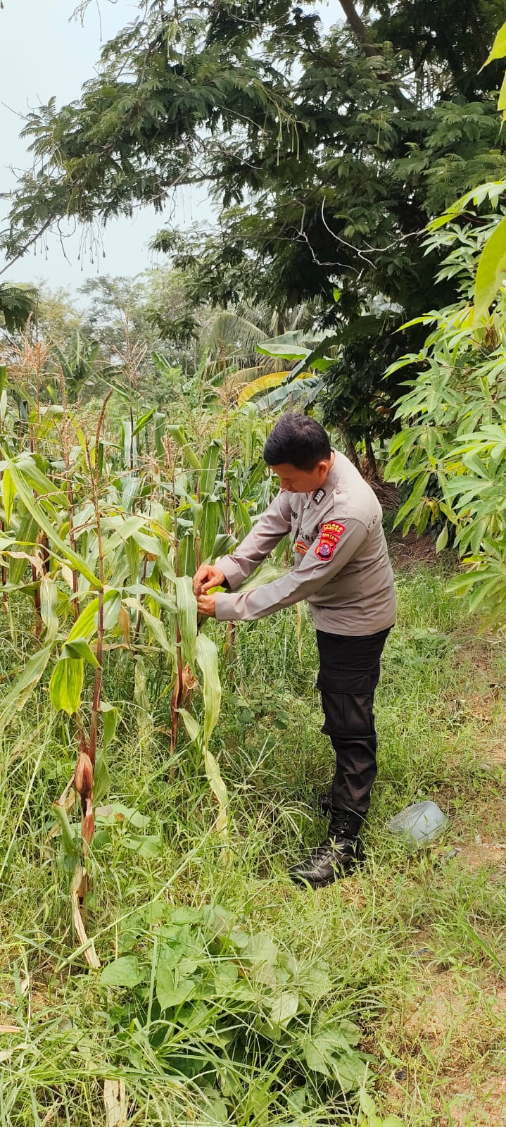-Polres Cilegon–Polda Banten. Polres Cilegon Polda Banten – Bripka Agustoni, Personil Bhabinkamtibmas Kelurahan Kotabumi Polsek Purwakarta, melakukan pengecekan dan pendampingan langsung terhadap tanaman jagung milik warga di wilayahnya. Kegiatan yang dilakukan pada.Jumat.(9-01-2026) bertujuan untuk mendukung upaya ketahanan pangan dan mempererat tali silaturahmi antara Polri dengan masyarakat.