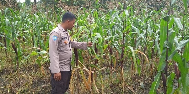 Cek Tanaman Jagung warga ,Personil Bhabinkamtibmas Dukung Ketahanan pangan di Kelurahan binaanya