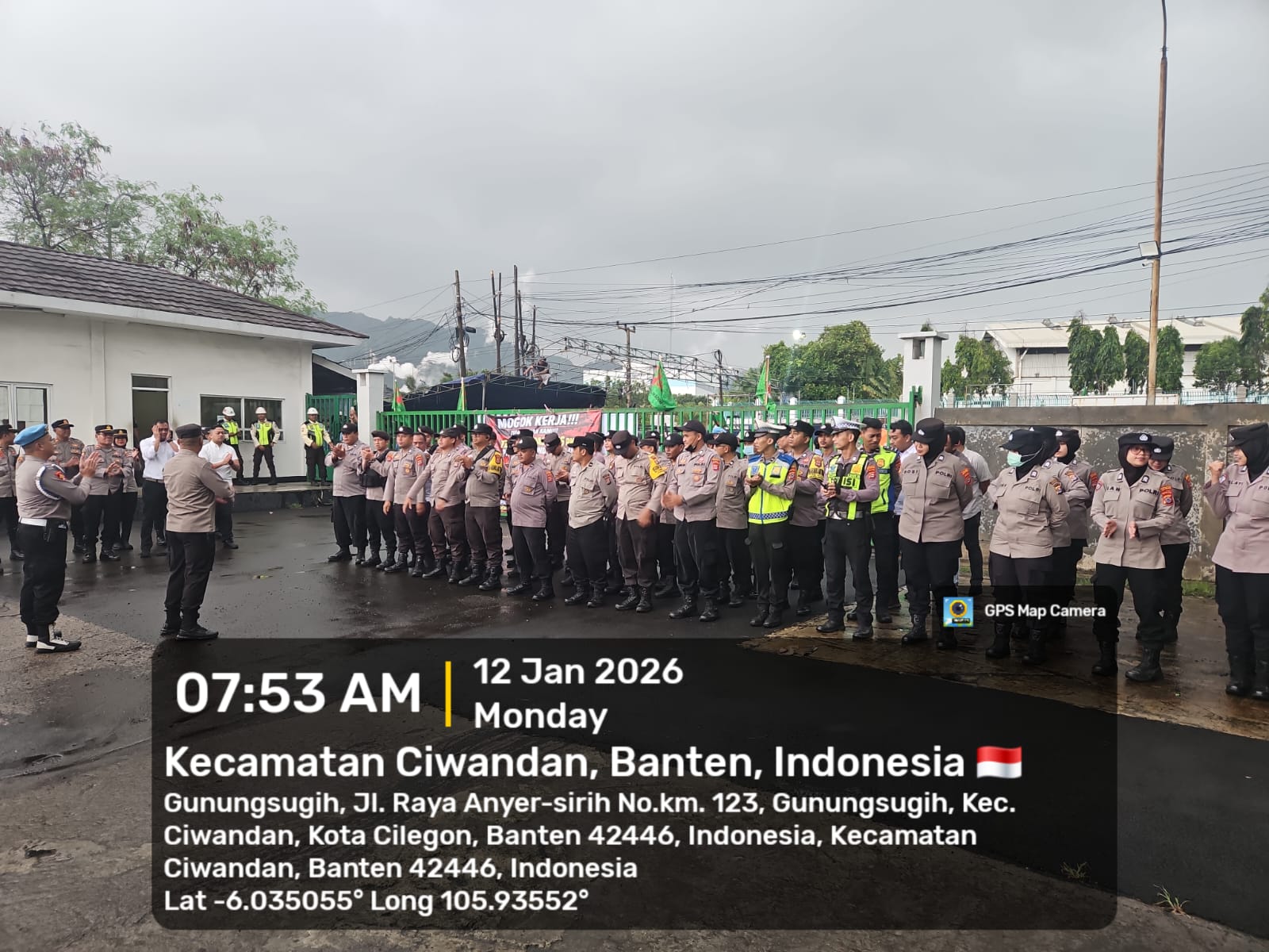 Cilegon - Polres Cilegon melalui Polsek Ciwandan siap mengamankan aksi unjuk rasa dari DPC FSPKEP Kota Cilegon di PT. Dongjin Indonesia. Kegiatan ini telah dilakukan pengecekan apel kesiapan oleh Kapolsek Ciwandan, Kompol Andi Suherman, S.H., M.M., Senin (12/01/2026).