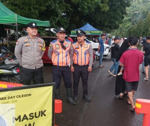 POLSEK PURWAKARTA SINERGI BERSAMA DISHUB LAKUKAN PENGAMANAN CAR FREE DAY