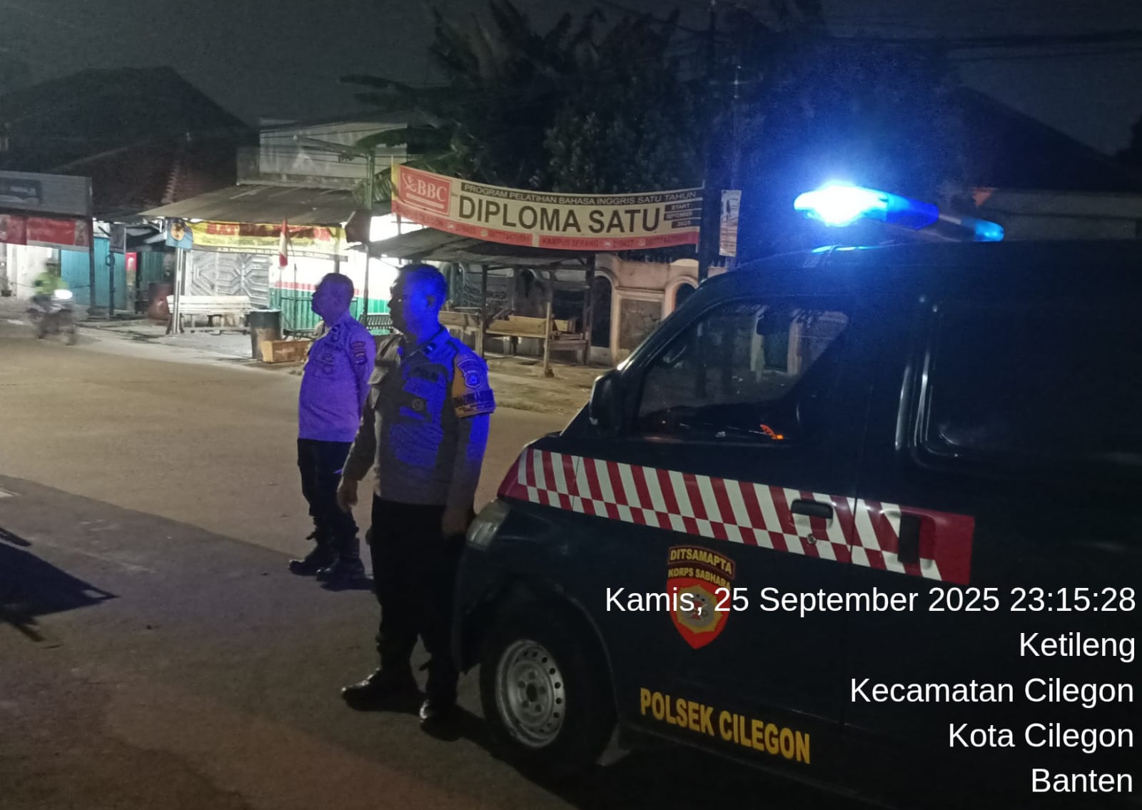 Anggota patroli  Polsek Cilegon laksanakan giat Blue light patrol antisipasi kejahatan malam hari jaga kondusifitas di wilayah binaannya