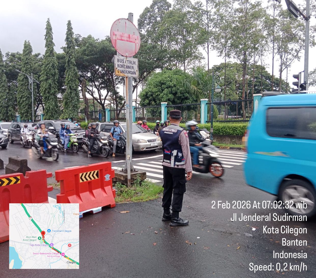 Cilegon – Polres Cilegon Polda Banten laksanakan Kegiatan Strong Point dalam rangka pengaturan arus lalu lintas dan kepadatan kendaraan pada jalur protokol/rawan macet di Darkum Polres Cilegon, Senin (02/02/2026).