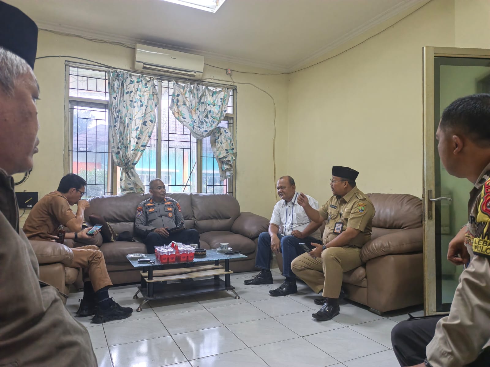 Kanit Binmas dan Bhabinkamtibmas Polsek Pulomerak Polres Cilegon Polda Banten sambangi Kelurahan Jalin silaturahmi sampaikan pesan kamtibmas.