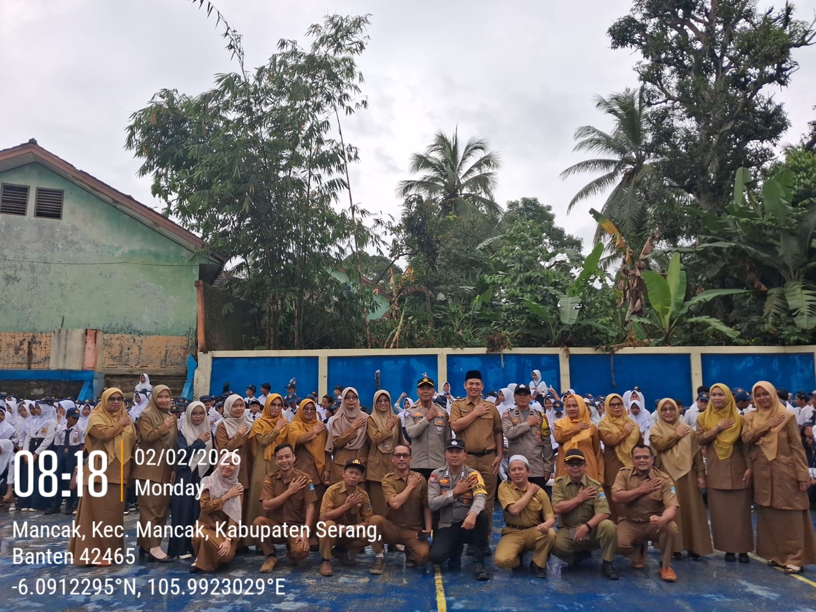 Mancak - Sebagai Pengemban Fungsi Harkamtibmas, Bhabinkamtibmas melaksanakan Kegiatan Pembina Upacara dan Silatuhrami SMPN 1 Mancak dalam rangka Program Quick Wins Presisi Kapolri dan Program Commander Wish Kapolres Cilegon "TRENDING"*. MINGGU, (02/02/2026).