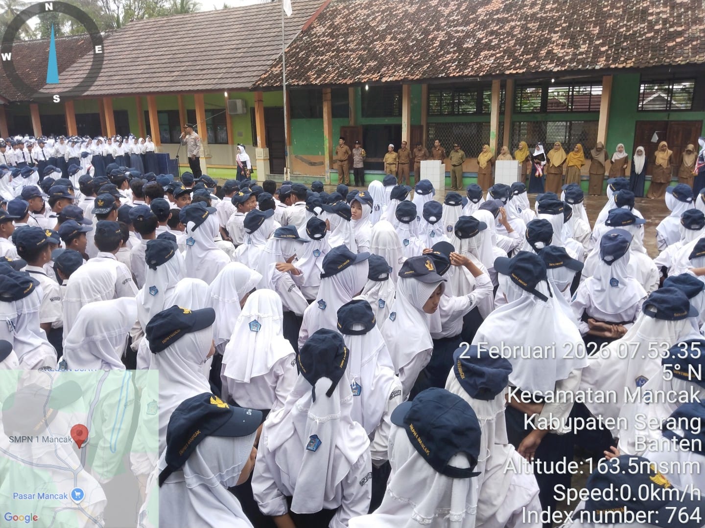 Mancak - Sebagai Pengemban Fungsi Harkamtibmas, Bhabinkamtibmas melaksanakan Kegiatan Pembina Upacara dan Silatuhrami SMPN 1 Mancak dalam rangka Program Quick Wins Presisi Kapolri dan Program Commander Wish Kapolres Cilegon "TRENDING"*. MINGGU, (02/02/2026).