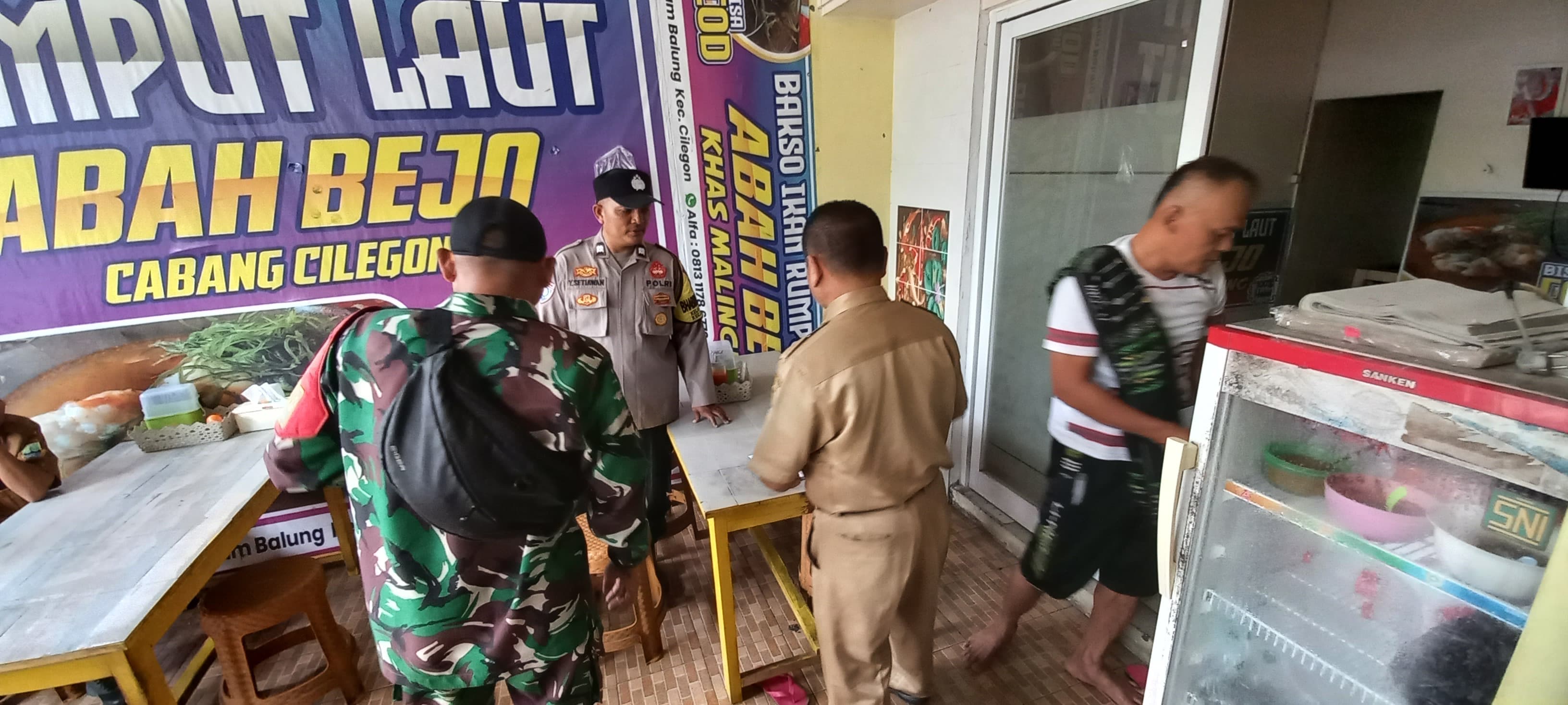 Cilegon - Bhabinkamtibmas dan Babinsa Kelurahan Lebak Denok, AIPTU Yudi Setiawan, bersama dengan pemerintah kelurahan Lebak Denok, melaksanakan monitoring dan himbauan kepada pemilik rumah makan di wilayah Kelurahan Lebak Denok, Selasa (24/02/2026).