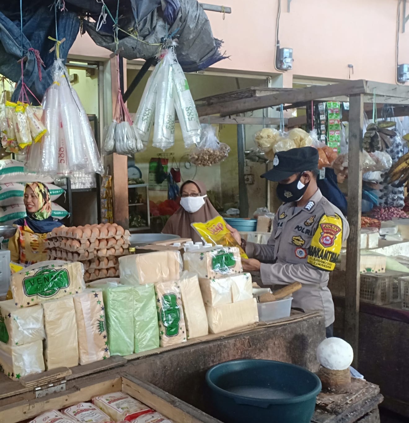 Bhabinkamtibmas Polsek Ciwandan Lakukan Sambang ke Pasar, Pantau Harga Bahan Pokok.