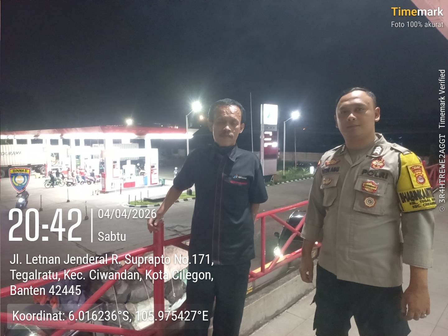 Cilegon - Kepolisian Polsek Ciwandan Polres Cilegon Polda Banten, melakukan pengecekan stok Bahan Bakar Minyak (BBM) di dua SPBU di wilayah Ciwandan, Cilegon, Sabtu (04/04/2026).