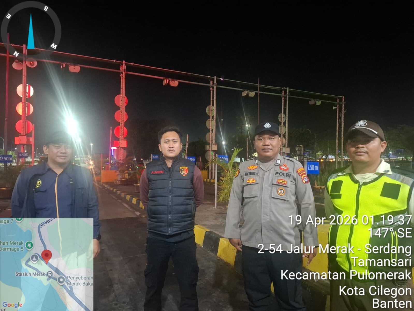 Cilegon - Personil Polsek Kskp Merak Polres Cilegon melaksanakan patroli di kawasan pelabuhan merak memberikan rasa aman dan damai, Minggu (19/04/2026)