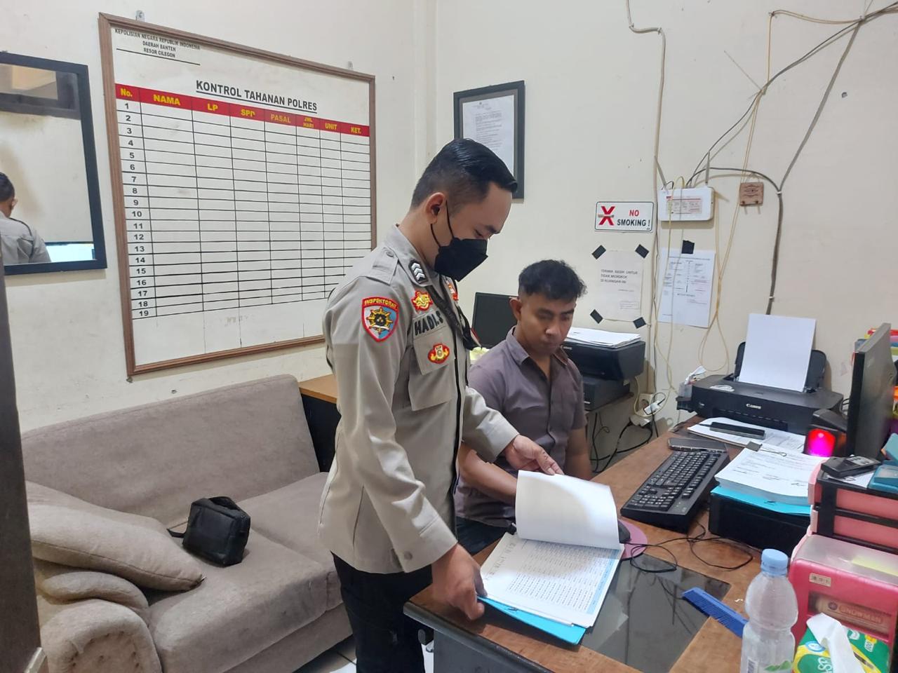 Brigadir HadI.S Personil Siwas Polres Cilegon Mengechek kinerja Sat Tahti Polres Cilegon Polda Banten