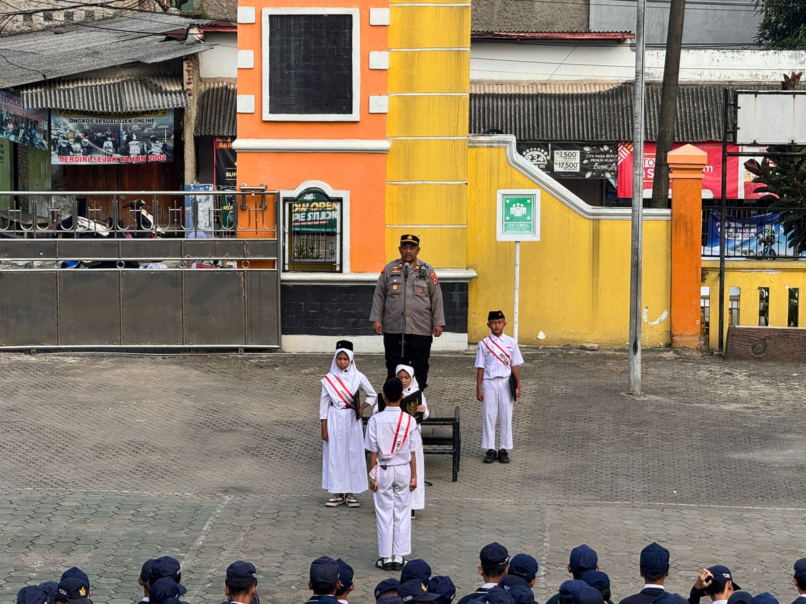 Cilegon ~ Satbinmas Polres Cilegon Polda Banten dipimpin oleh PS Kasatbinmas Polres Cilegon IPTU Muhyidin bersama dengan personel Satbinmas Polres Cilegon melaksanakan kegiatan Polisi Peduli Pendidikan dengan menjadi Pembina Upacara di SMPN 2 Cilegon, Senin (20/04/2026).
