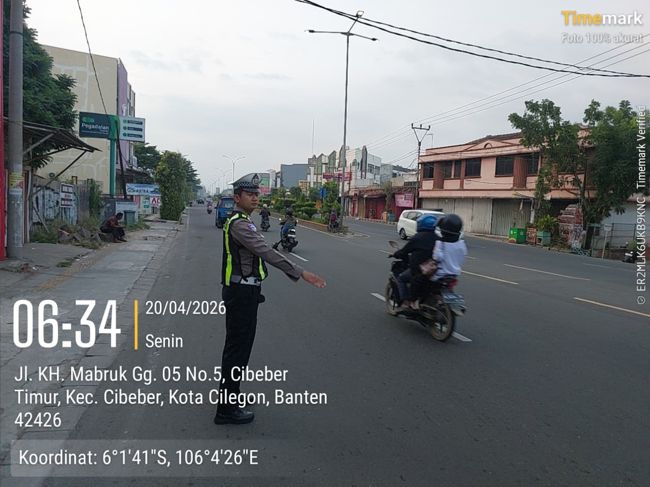 Cilegon, Satlantas Polres Cilegon Polda Banten – Berikan pelayanan kepada masyarakat Kasat lantas Polres Cilegon AKP Ridwan memerintahkan jajaran lalulintas untuk melaksanakan pengaturan lalu lintas di penggal – penggal jalan yang rawan kemacetan di Kota Cilegon, (Senin,20/4/2026)