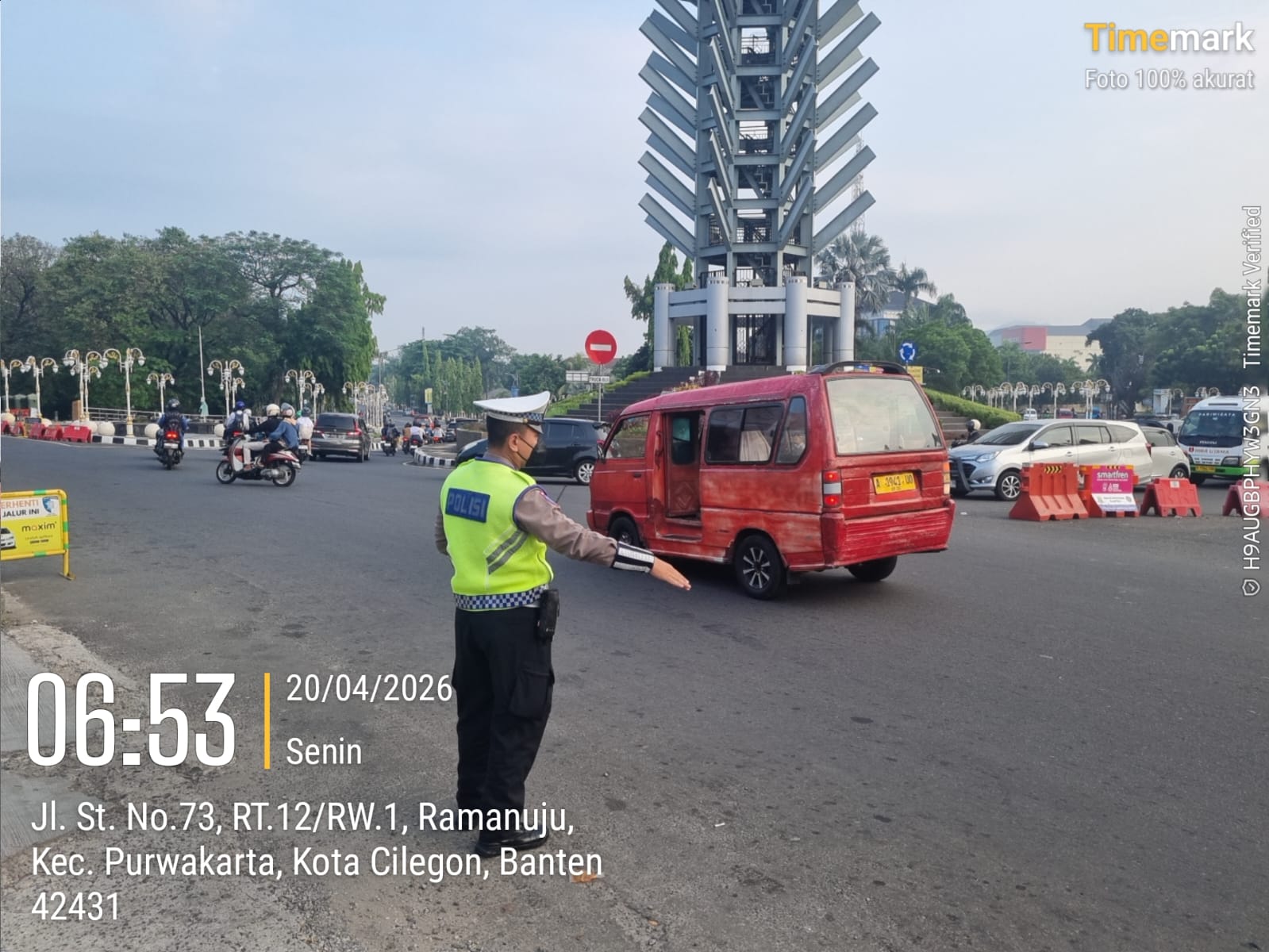 Satlantas Polres Cilegon Melaksanakan Pengaturan Pagi Hari