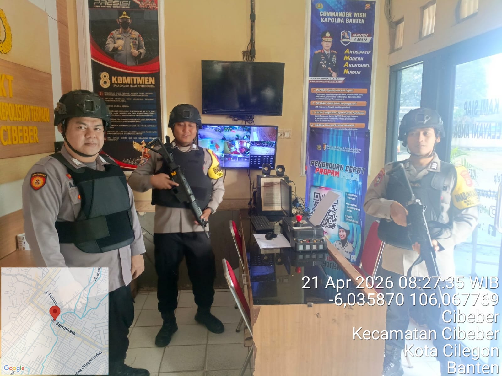 Cilegon – Polres Cilegon Polda Banten Guna mengantisipasi adanya potensi ancaman dan gangguan terhadap keamanan kantor maupun keselamatan personel piket jaga, Personel Polsek Cibeber Polres Cilegon selalu tingkatkan kesiapsiagaan dan kewaspadaan dengan rutin menggelar kegiatan Sistem Pengamanan Mako (Sispam Mako), Selasa (21/04/2026).