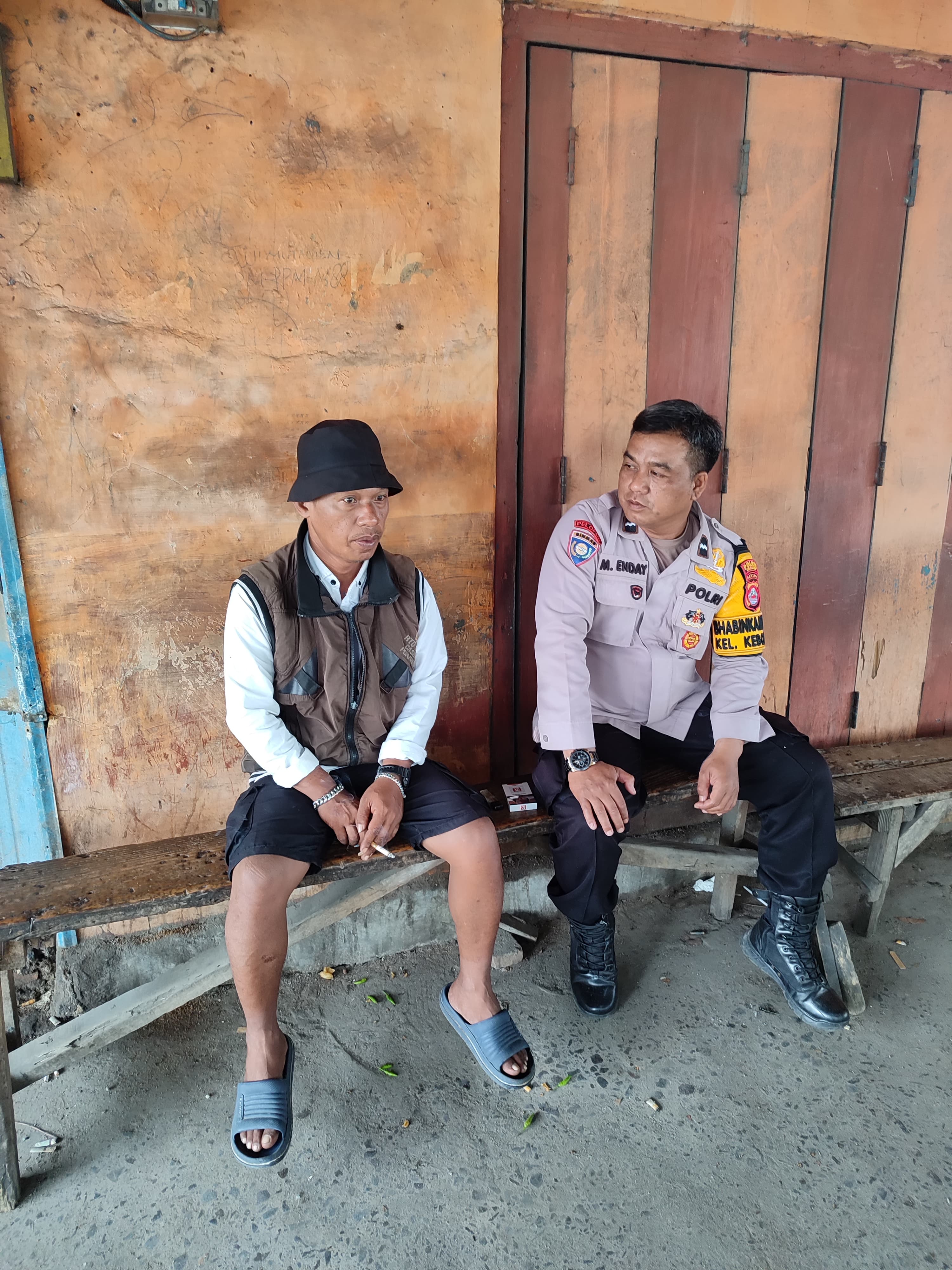 Cilegon - Personil Bhabinkamtibmas Polsek Ciwandan Polres Cilegon Polda Banten Menyampaikan Pesan Kamtibmas dan mengajak masyarakat terus aktif dalam kepedulian terhadap Pemeliharaan keamanan lingkungan di daerah Binaanya, Selasa (21/04/2026).