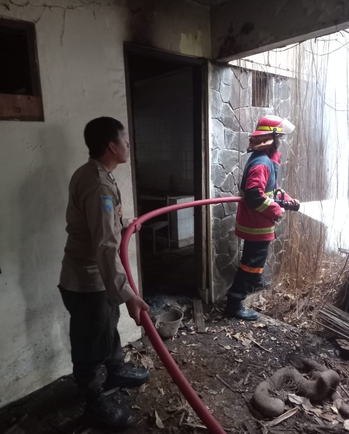 Personil bhabinkamtibmas bantu damkar padamkan kebakaran rumah kosong di perumahan ks kelurahan kotabumi