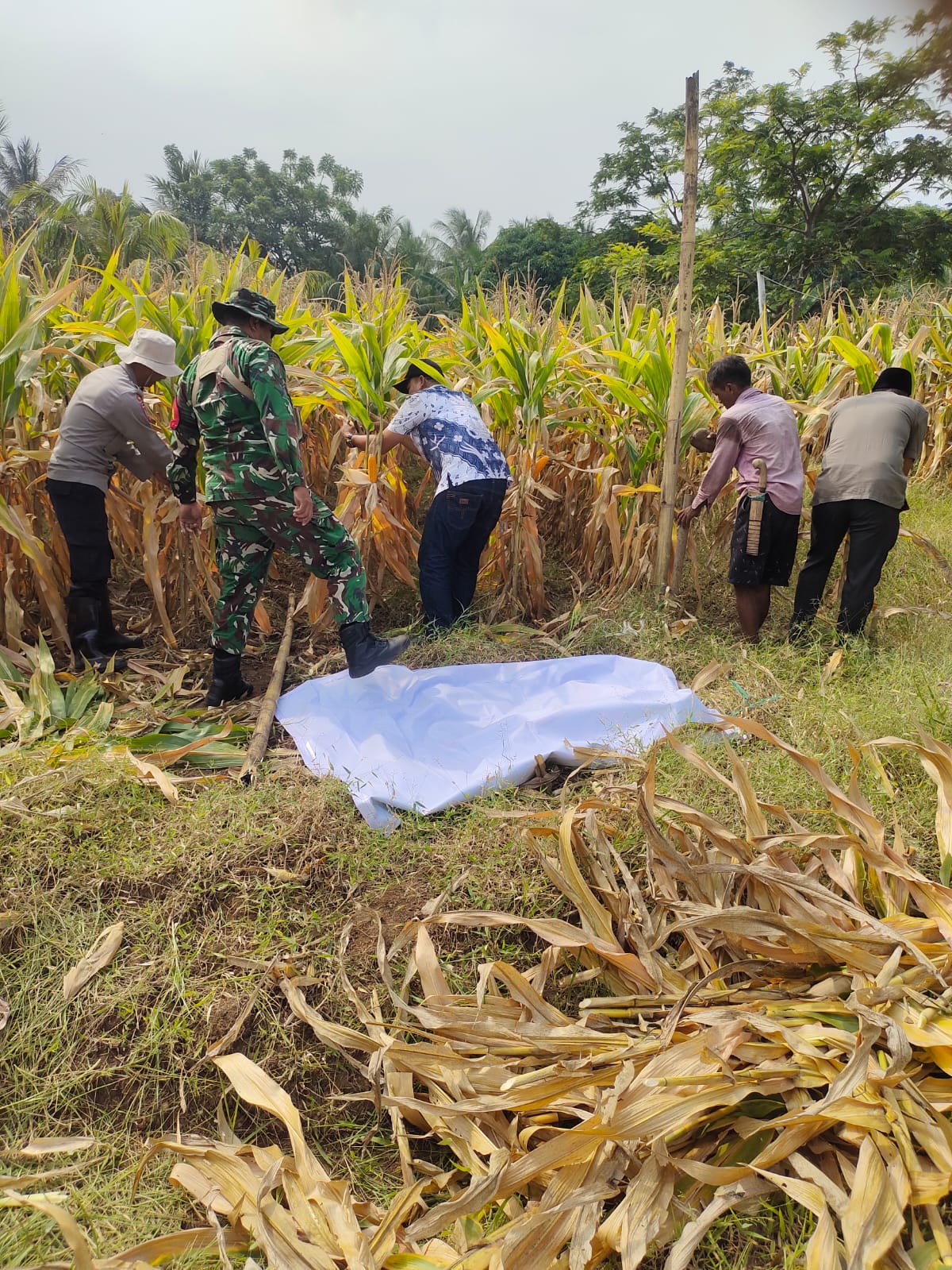 K. beserta anggota Polsek Puloampel melaksanakan Kegiatan Panen Raya Jagung